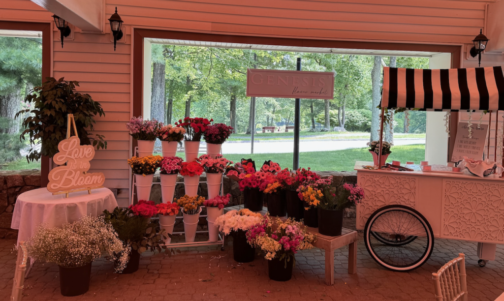 It was an amazing celebration with friends and family, absolutely stunning decor and a beautiful flower cart to make your own flowers on our outside patio!