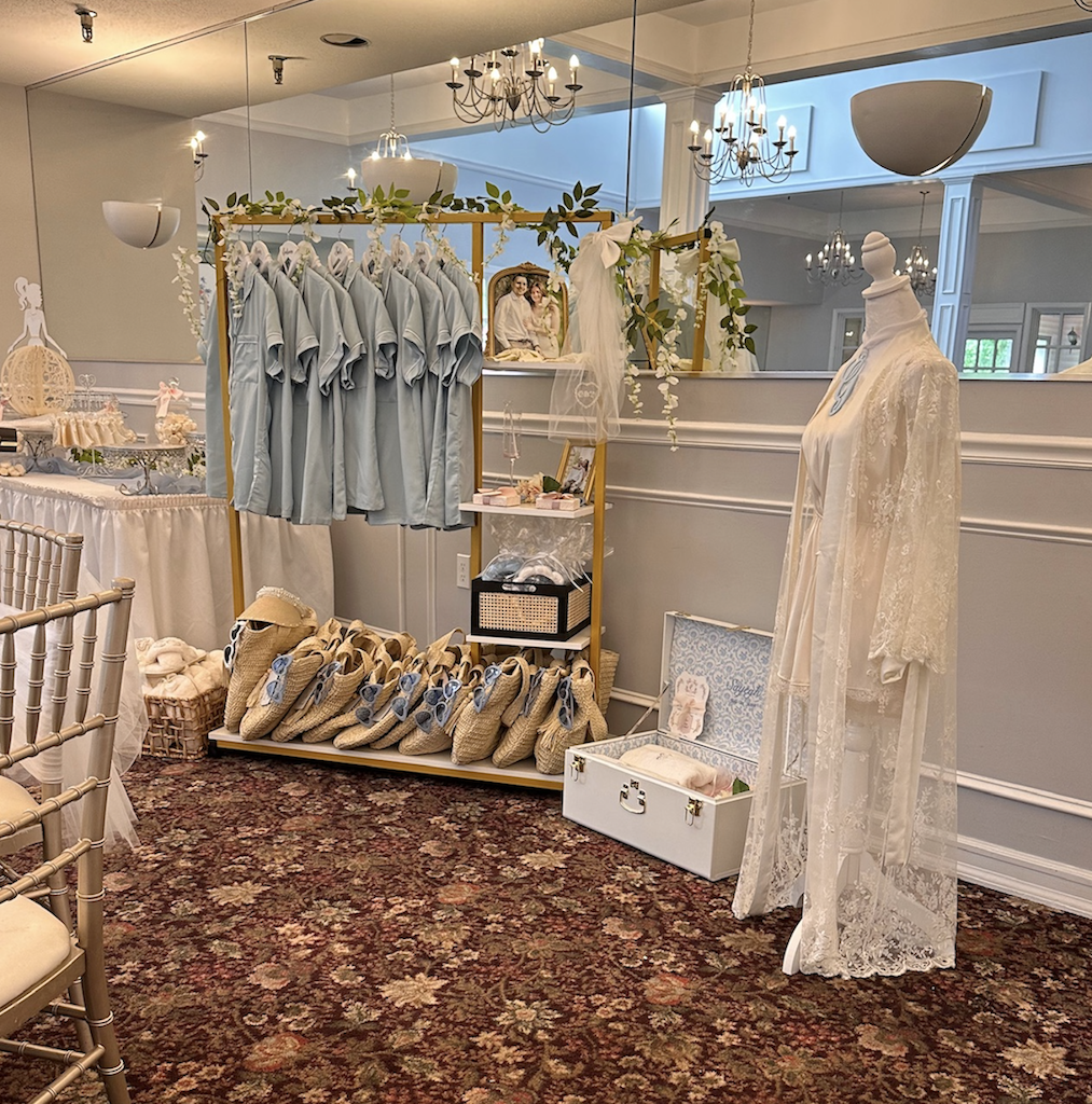 She also placed additional decor on the sides for her guests to admire like this beautiful display of her wedding day robe and bridesmaids pajama sets and more!