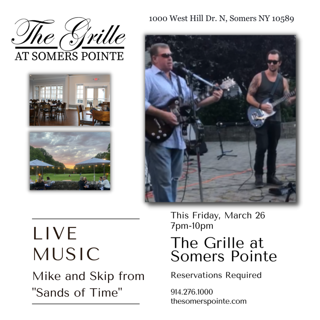 Join us for an evening of Acoustic Classic Rock – By Skip and Mike – from Sands of Time. The two have been playing acoustic rock tunes to many different venues and bringing an awesome energy to their shoes! Reservations required for the evening.